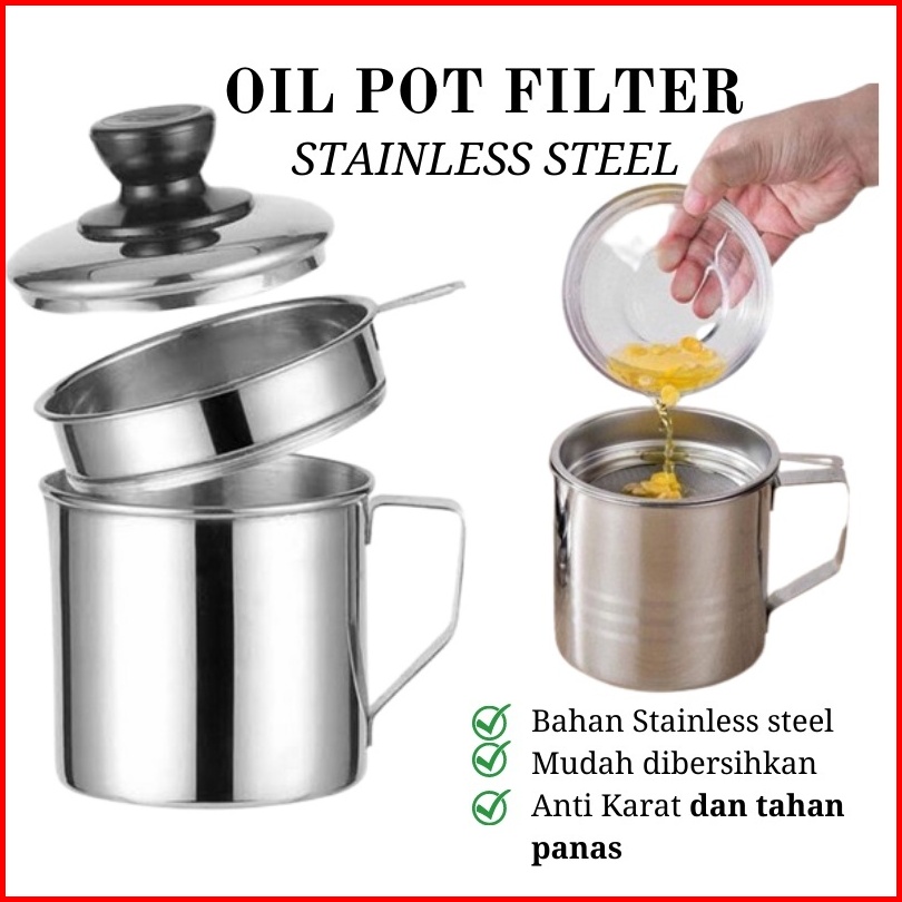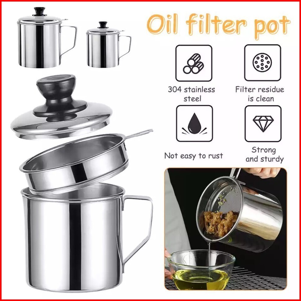 Km Oil Pot Saringan Stainless Minyak Goreng Sisa Wadah Jelantah 1l 1 3ml