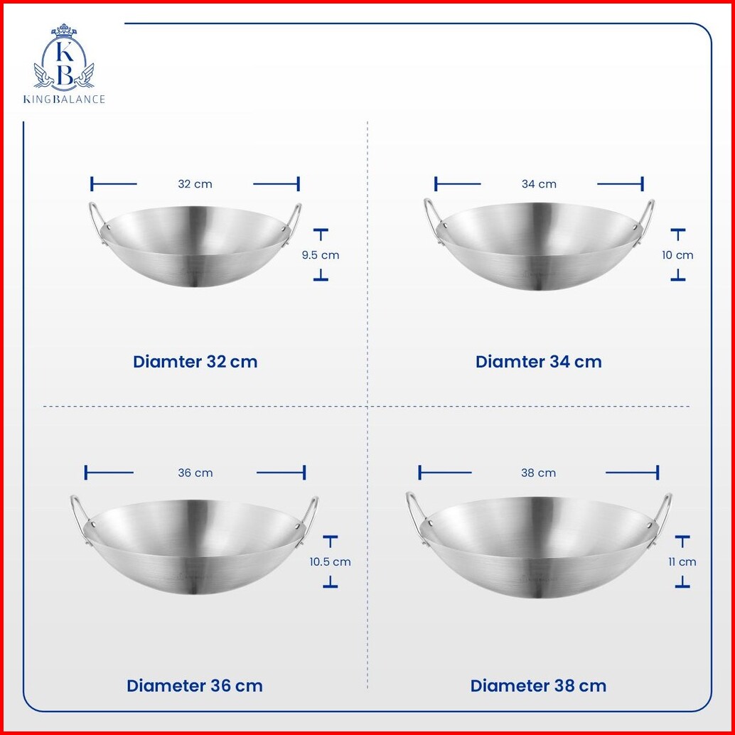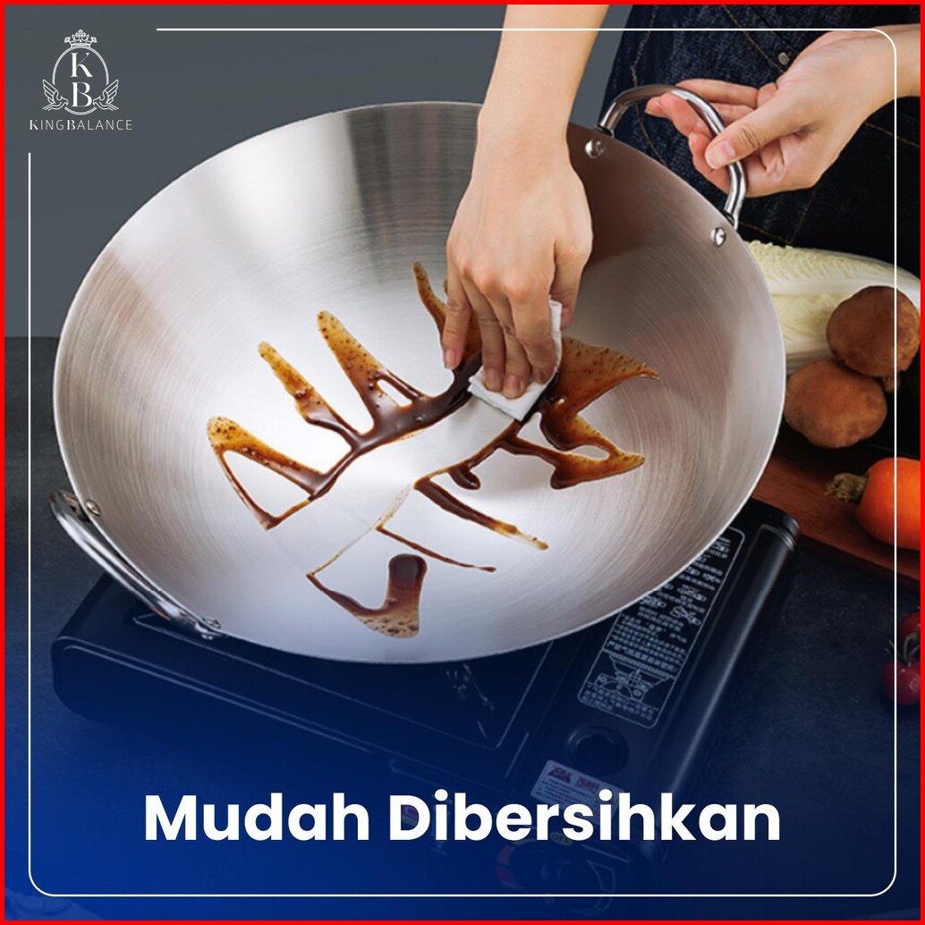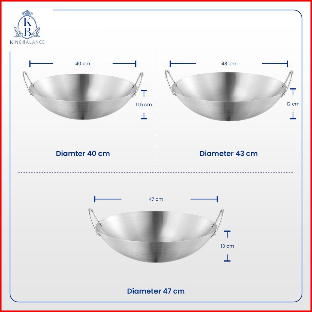 King Balance Wajan Stainless Steel 304 Food Grade Berkualitas Tinggi Wok 215 Bpa Free 32cm-47cm