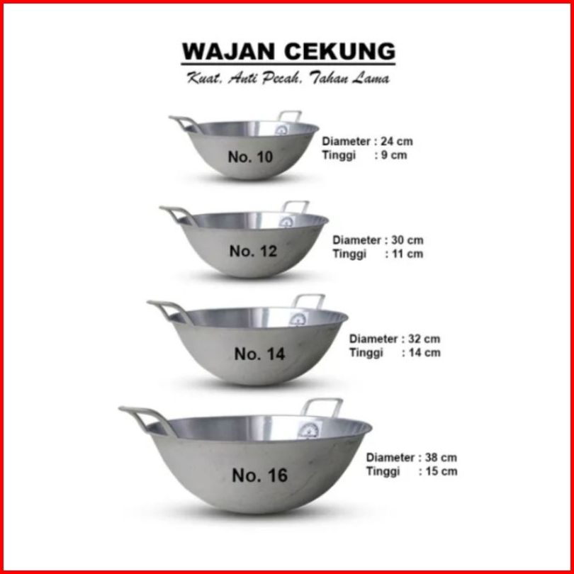 - Kuali Ukuran Nomor 10 11 12 13 14 15 16 Bonus Spons Wajan Masak Kuping Anti Lengket Panci Penggorengan Murah Wajan Gor