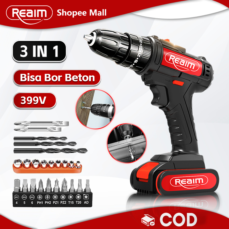 [Mall] Reaim Mesin Bor Listrik 1 Set Lengkap Impact Wrench Ori Cordless Multifungsi 13mm 16mm Apr Bosch Jumbo Baterai
