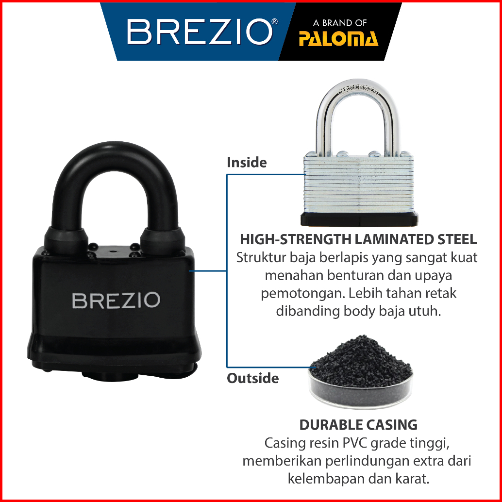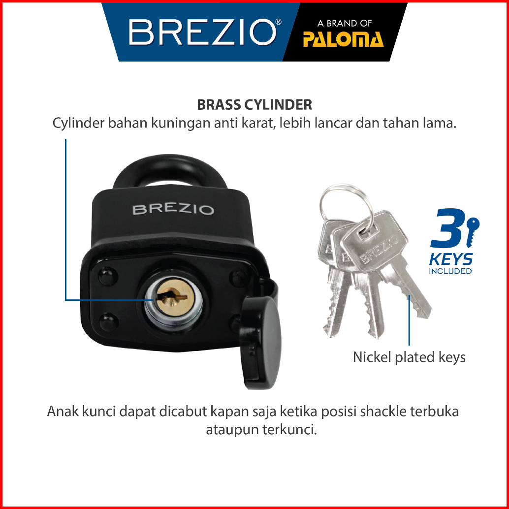Brezio Gembok Padlock Pagar Gerbang Loker Gembok Kunci Pintu Mobil Box Leher Panjang Pendek Long Short Shackle Encased B