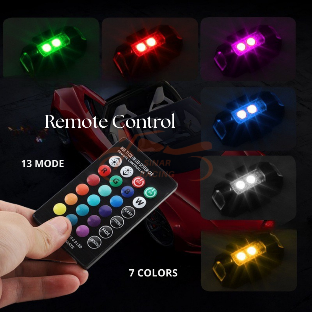 Sinar Rng Lampu LED Pesawat RGB 7 Warna Kedip — Paket 2 Lampu + 1 Remote USB, Strobo Universal untuk Motor & Mobil