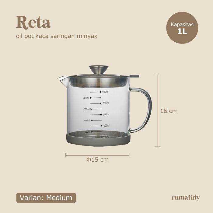 RETA Oil Pot Saringan Minyak Kaca Wadah Tempat Saringan Minyak Transparan 1L dan 1.5L - RETA M (1 Liter) PACKING BIASA