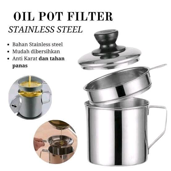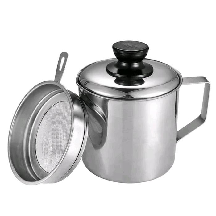 Oilpot Stainless Steel 1 Liter Dengan Saringan Minyak Wadah - Oilpot 1 Liter