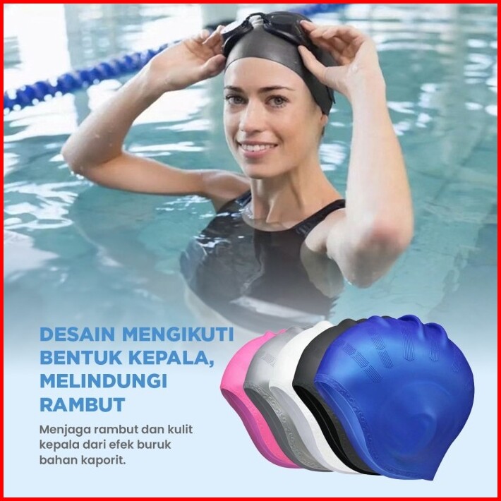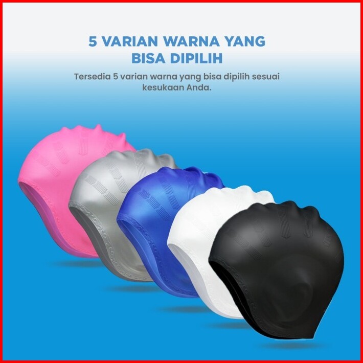 Xinyue-topi Renang Silikon Dengan Pelindung Telinga Ear Cover Swimming Cap Diving Dewasa Hitam