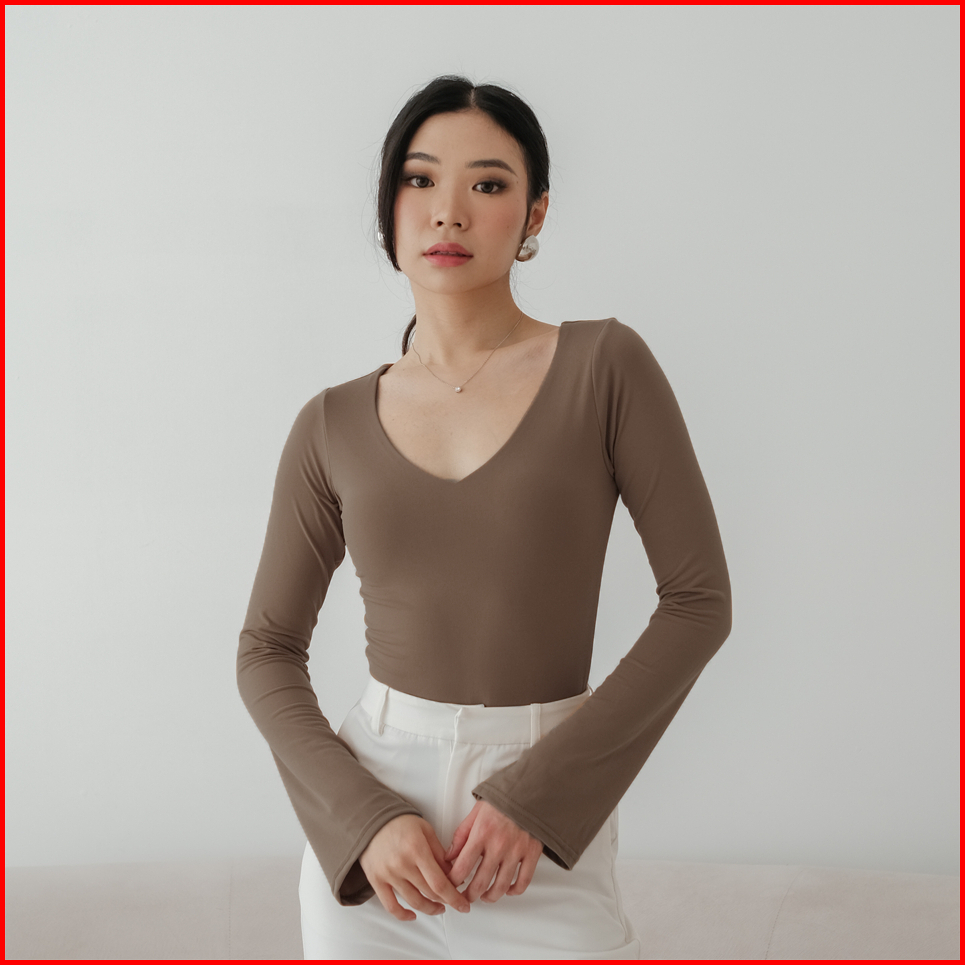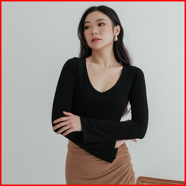 Nzinga Jiyeon Bodysuit Wanita Polos Lengan Panjang - Model V Neck Slim Fit Ukuran S - Xxl