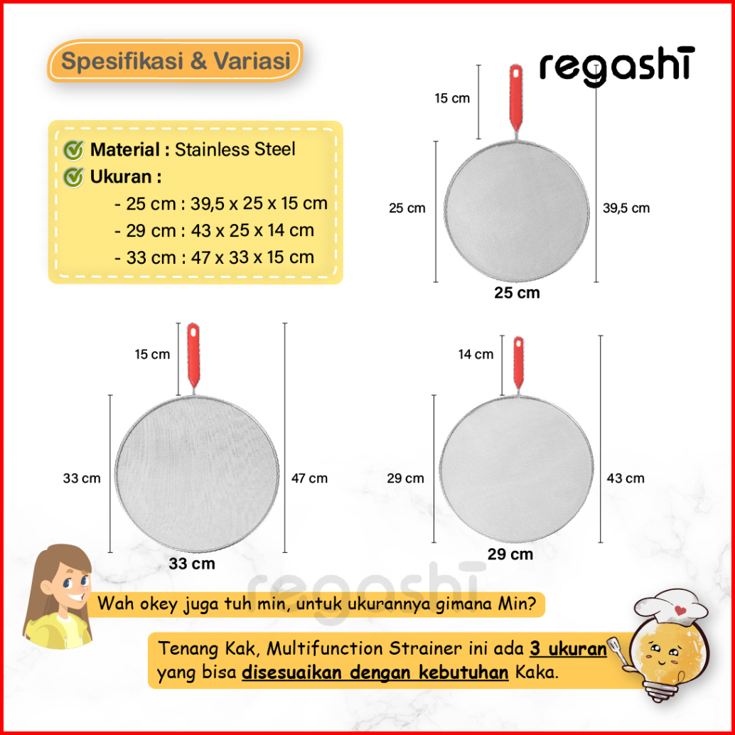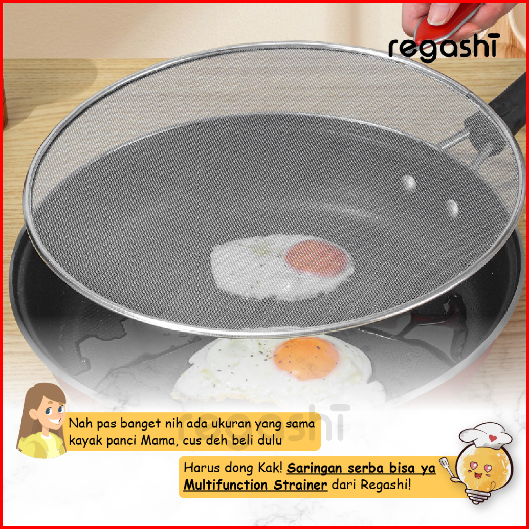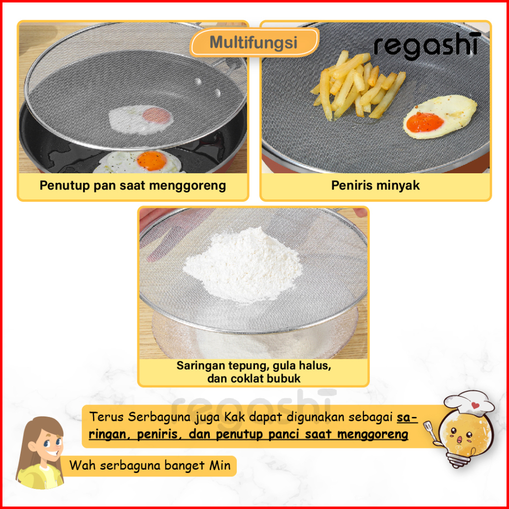Multifuction Strainer Saringan Pelindung Cipratan Minyak Dengan Handle Peniris Pipih Serbaguna