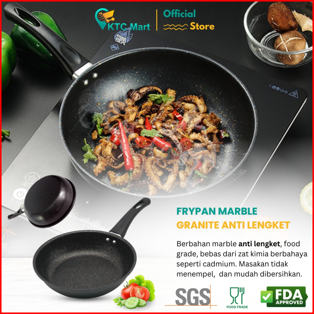 Oblerome Wajan Goreng Masak Anti Lengket Frypan Granite Marble Anti Lengket Penggorengan