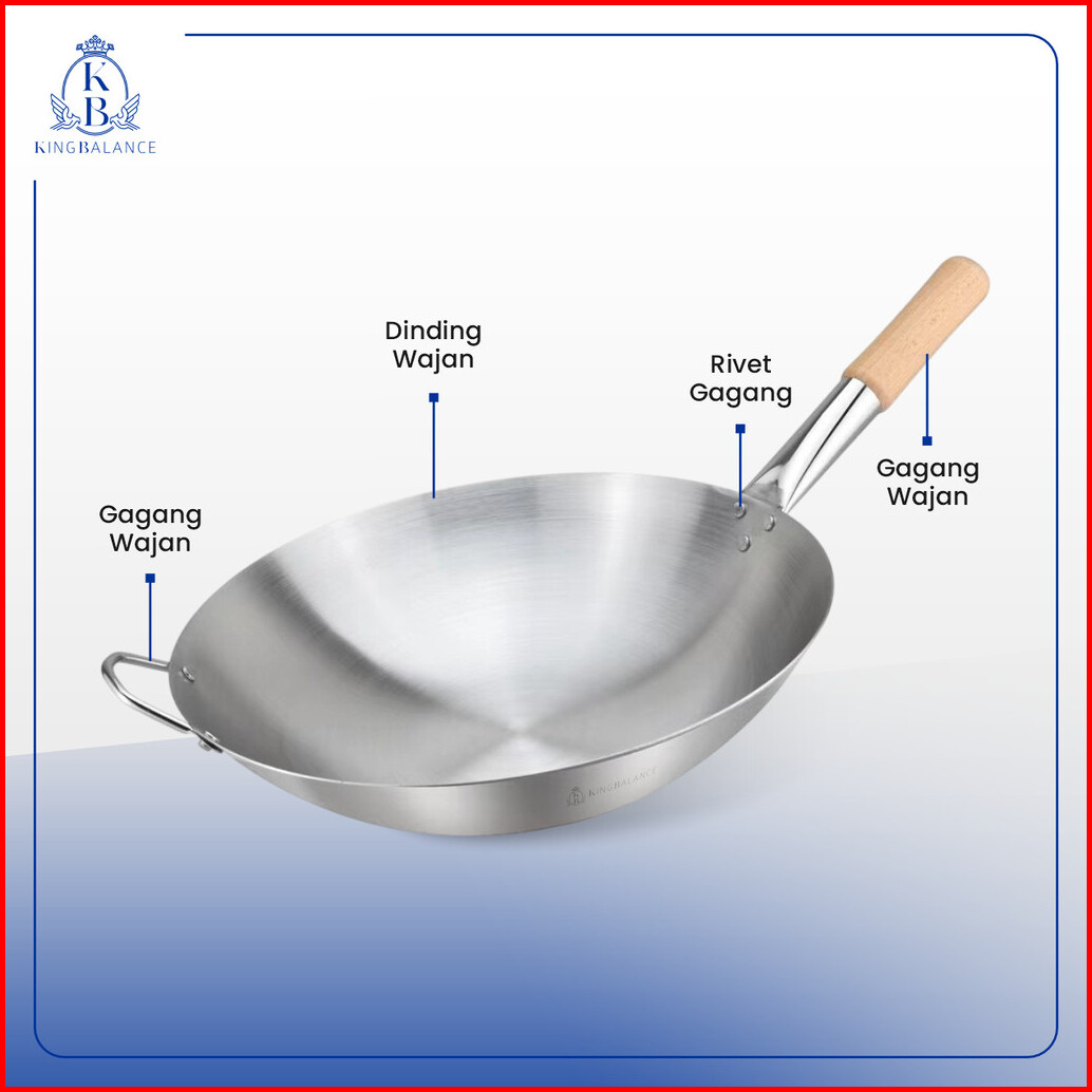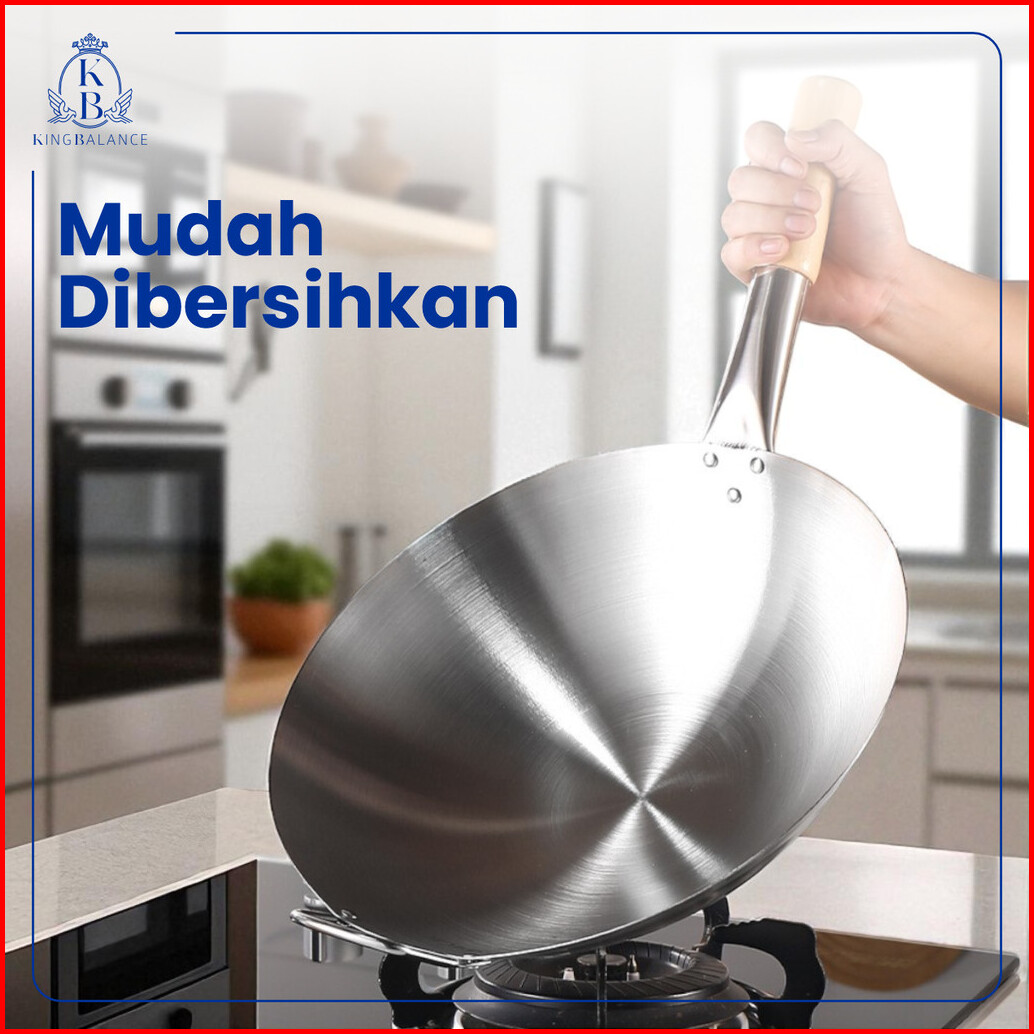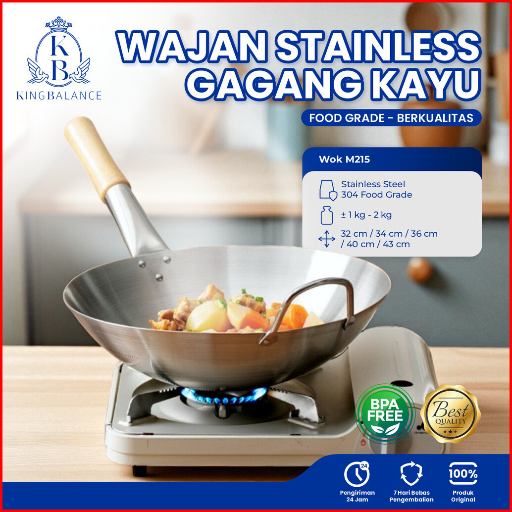 King Balance Wajan Stainless M215 Gagang Kayu Food Grade Berkualitas Bpa Free 304 Stainless Steel 32cm 34cm 36cm 40cm 43