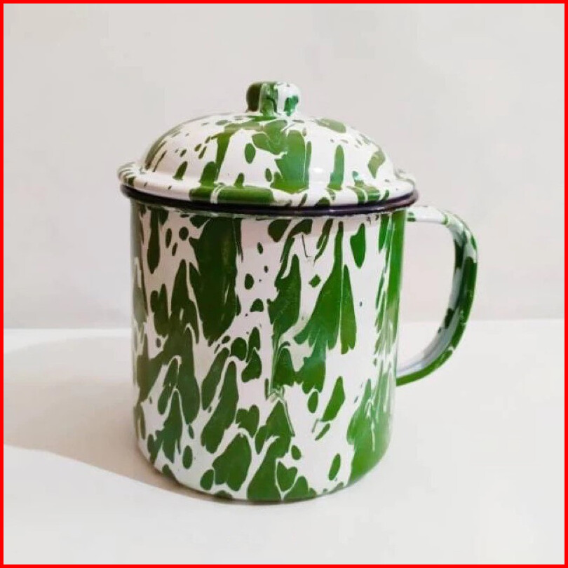 Mug Burik 7 8 10 12 Cm Cangkir Besi Enamel Motif Loreng Army Hijau Putih Blirik Gelas Jadul Tradisional