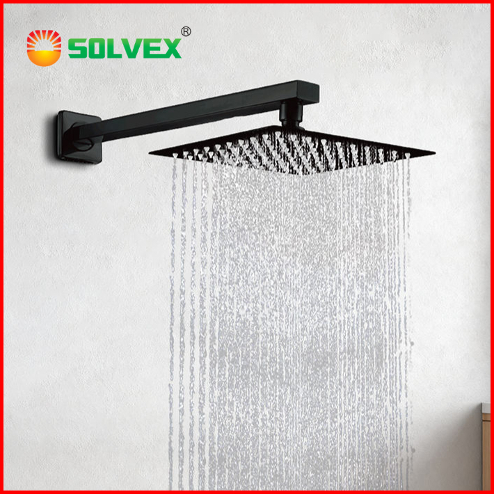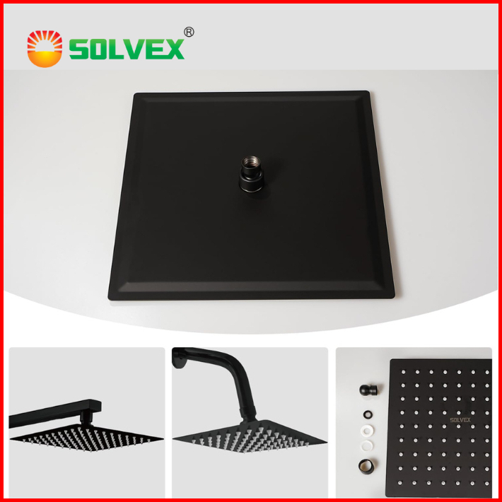 Solvex Kepala Shower Stainless Hitam Head Wall Shower Kotak 8-12 Inch