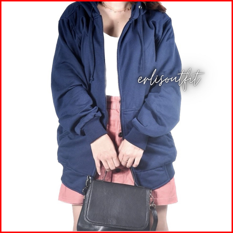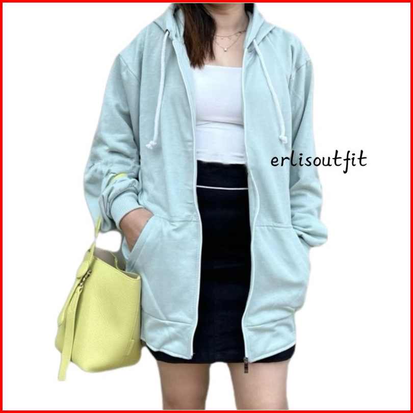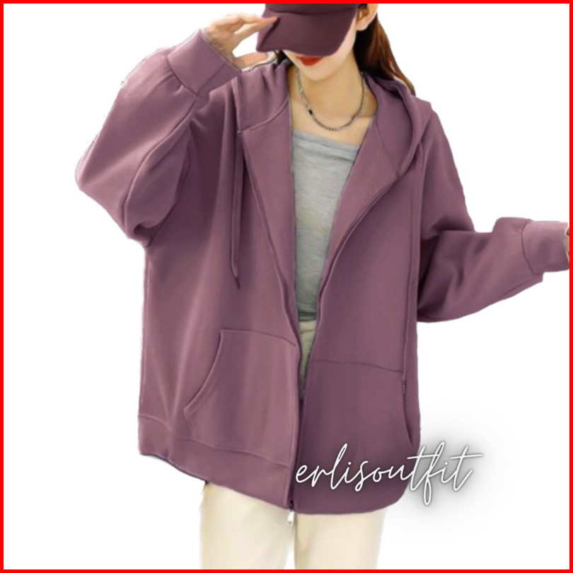 Jaket Hoodie Oversize Polos Resleting Zipper Wanita Pria Distro Korea Carla