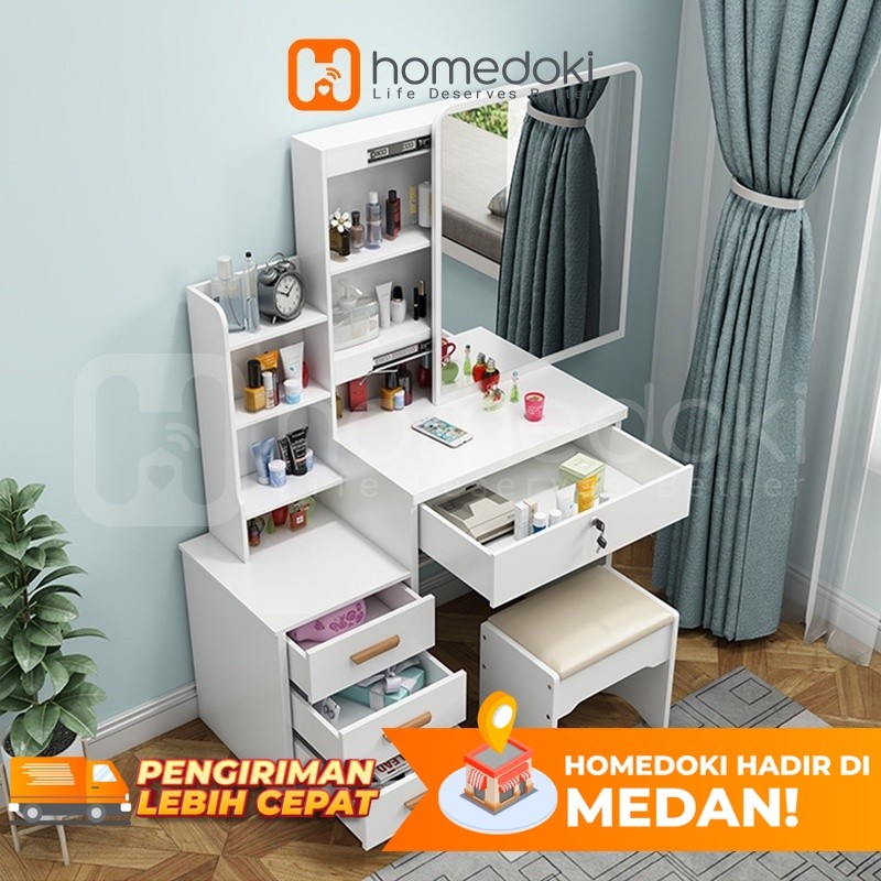 Homedoki Meja Rias Putih Lampu LED / Meja Rias / Meja Rias Kaca Sliding/ Meja Rias Minimalis