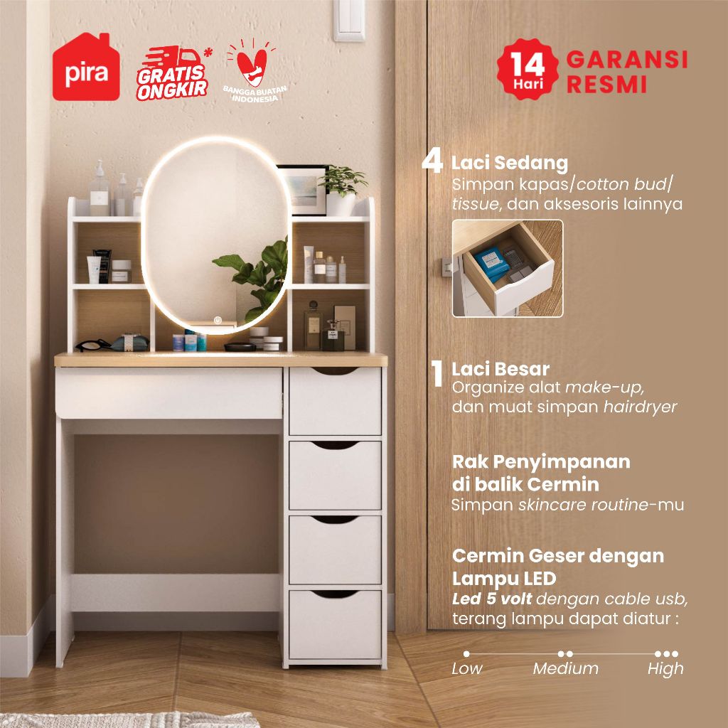 PIRA METROPOLIS - LANY DS80 Meja Rias LED / Meja Rias dengan Kaca Geser