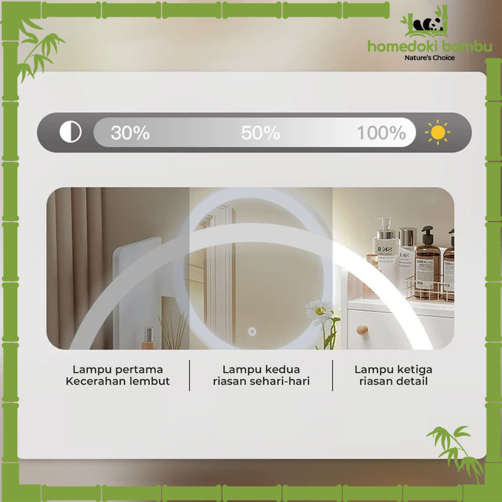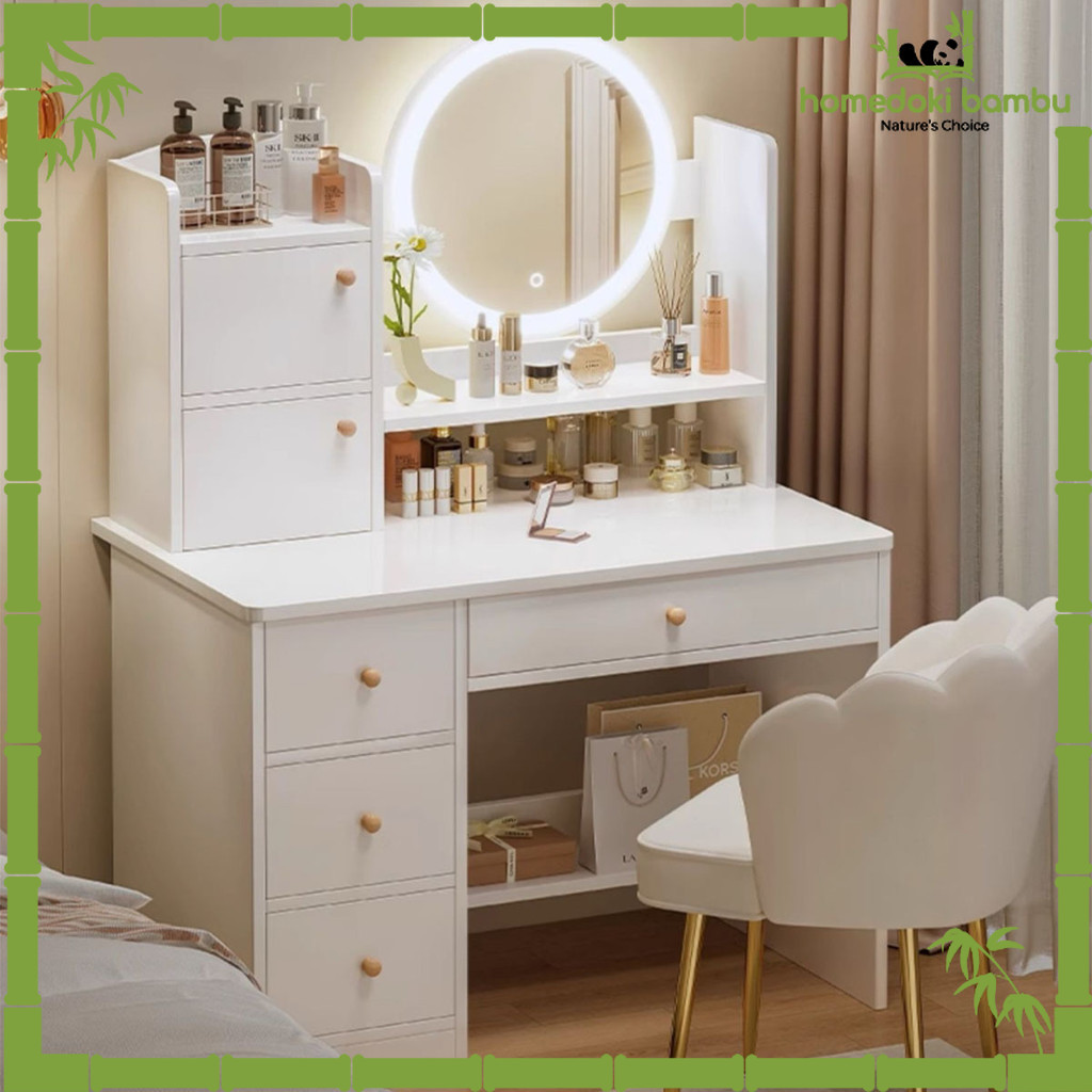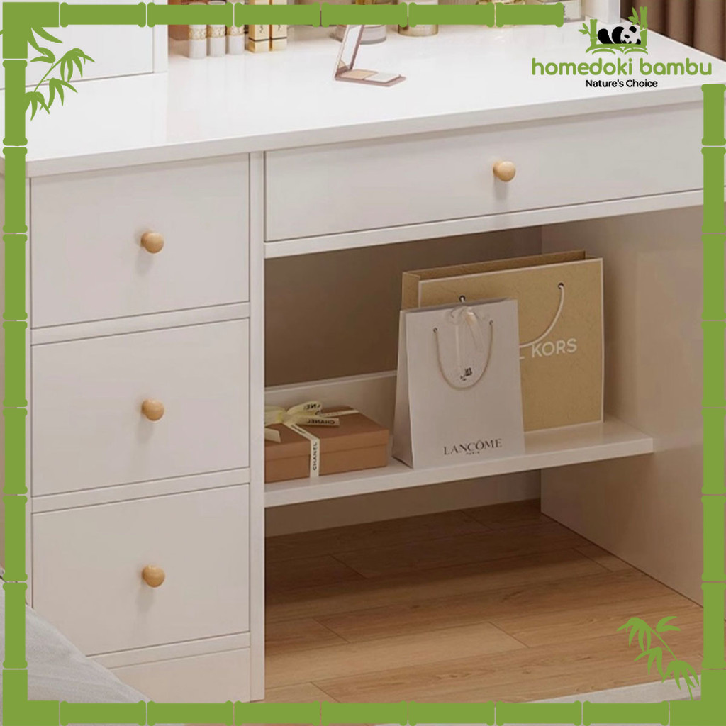 Homedoki Bambu - Meja Rias Minimalis/Meja Rias Led/Meja Rias Lampu/Meja Rias Aesthetic/Meja Rias Sliding/Meja Make up