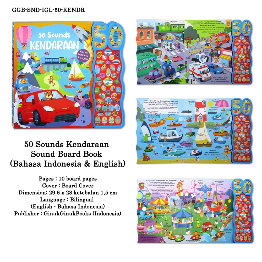 50 Sounds Kendaraan / Peternakan Sound Board Book (Bahasa Indonesia & English) [GinukGinuk] - Sound Book - Buku Bersuara