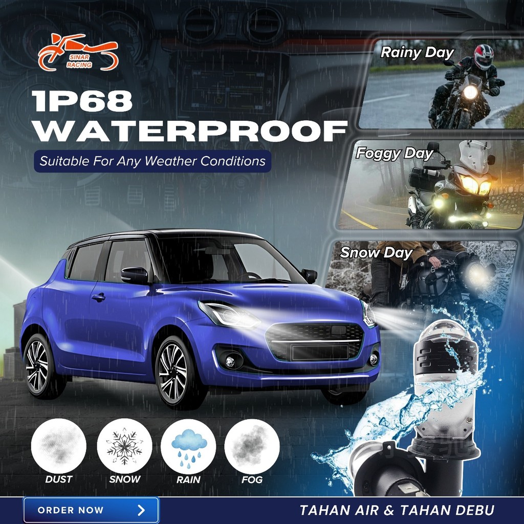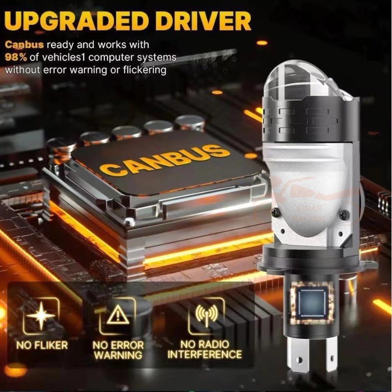 Sinar Rng Lampu Utama H4 LED 120W Projector Blue Lens Devil Eye Dengan Kipas Pendingin IP68
