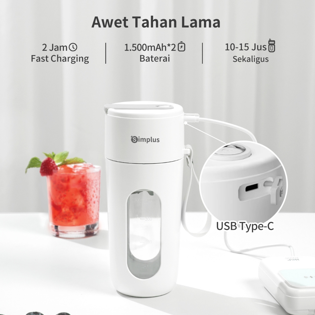 Simplus Juicer Portable Blender Cordless 340ml 10 Bilah baja tahan karat 304