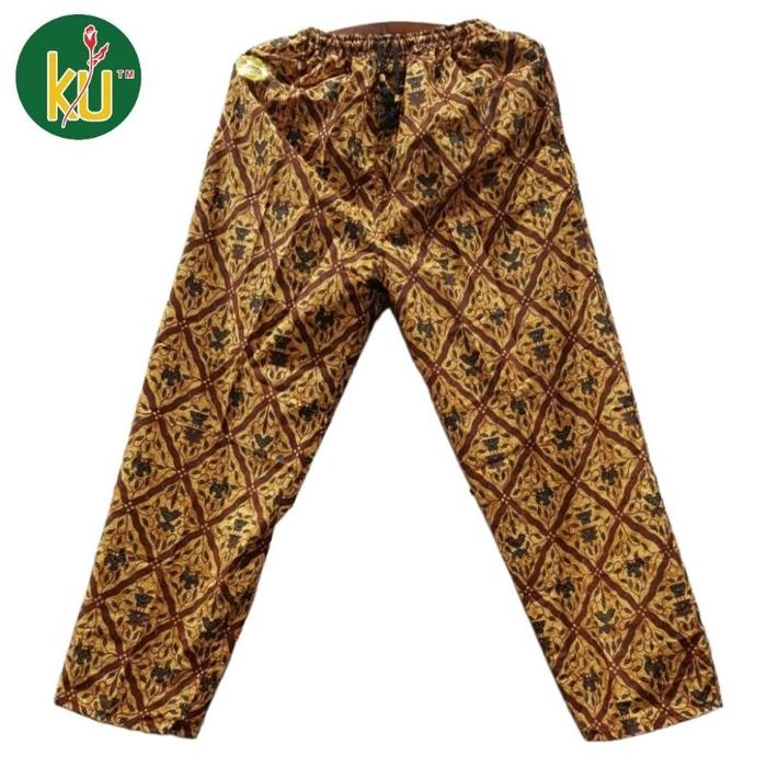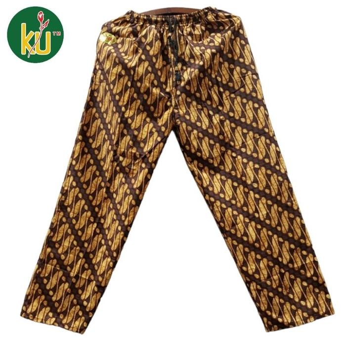 KENCANA UNGU CELANA PANJANG BATIK ARJUNA LABEL PUTIH KUP BAHAN KATUN LEMBUT NYAMAN MOTIF HITAM KANTONG BELAKANG 105 CM - PARANG JUMBO