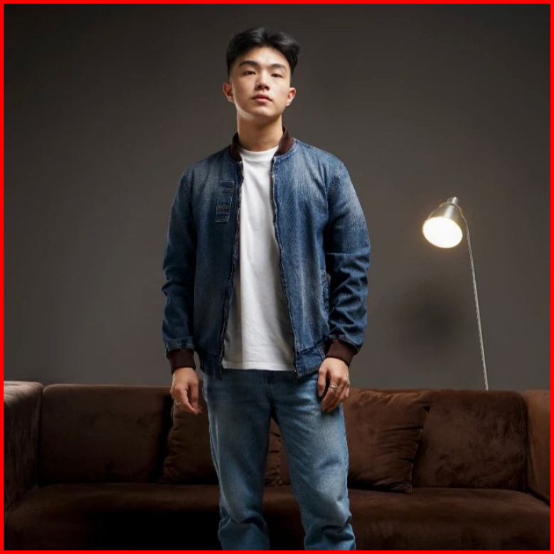 Mm Store Jacket Bomber Jeans Premium Quality Pria Elegant Casual Rib Coklat Size M Sampai Xxl