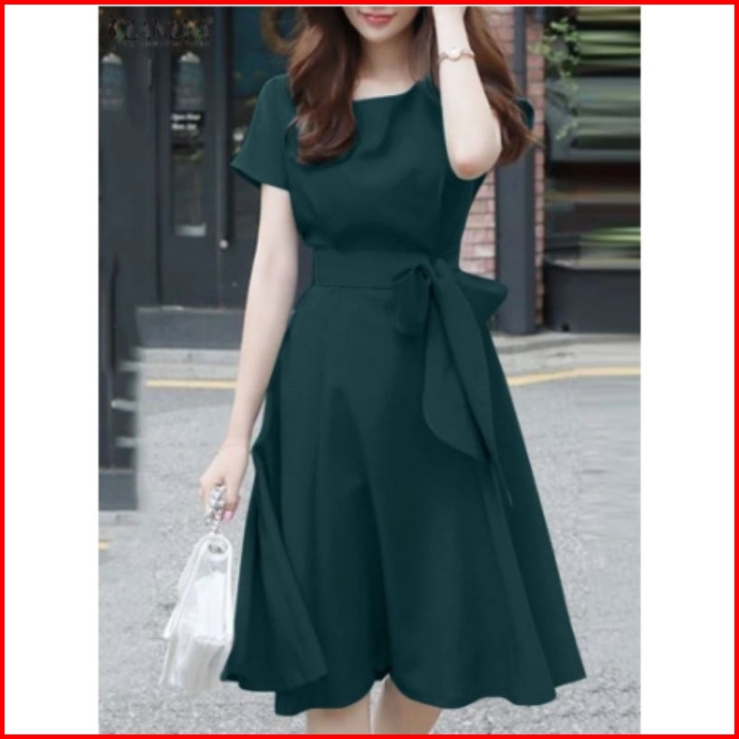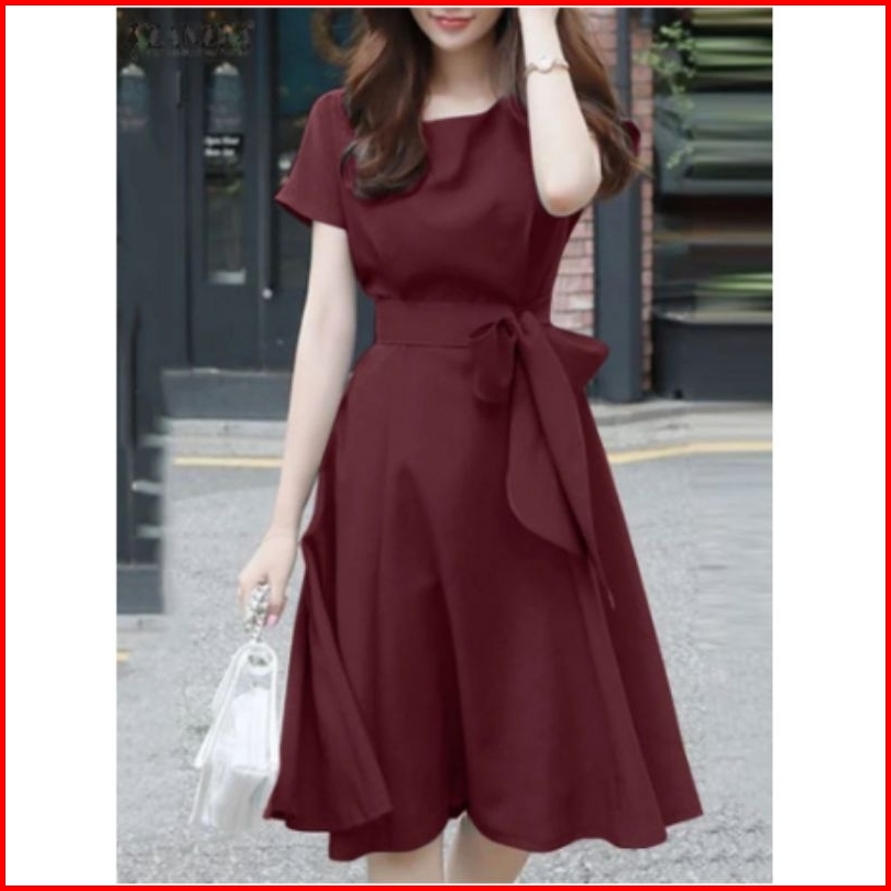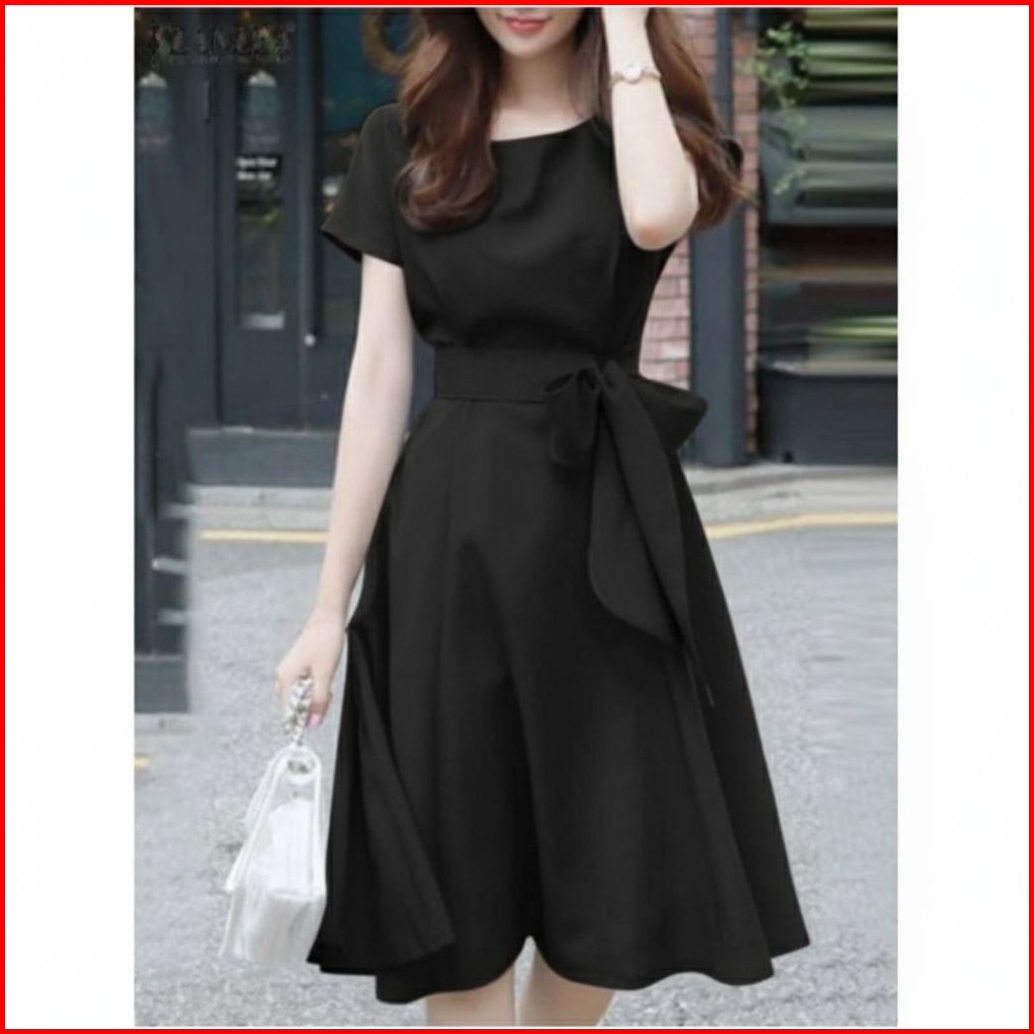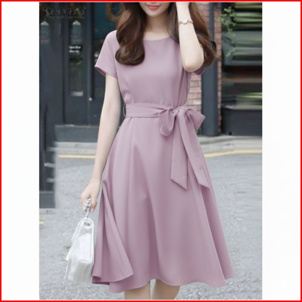Tita Dress Midi Flare Skirt Basic Scuba Dress Pesta Wanita