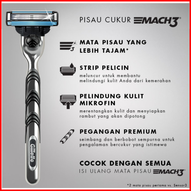 Gillette Mach 3 Alat Cukur Manual Pria Pengaman Cukur Cukur Jenggot Wajah 1 Dudukan 1 Pisau 1 Kotak Cukur Hadiah