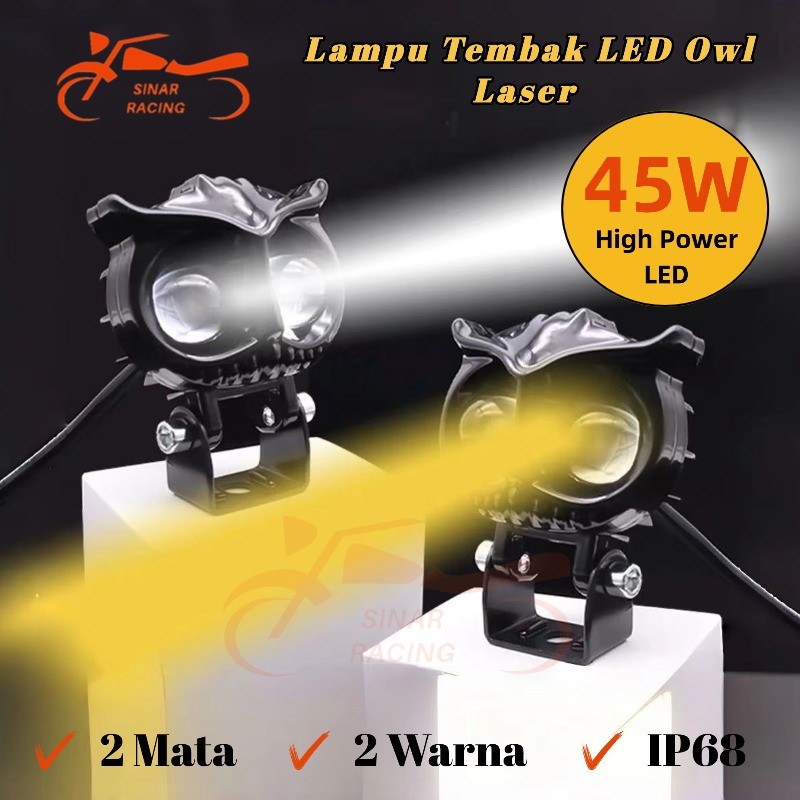 Sinar Rng Lampu Sorot Owl LED 2 Mata 45W Laser IP68 Cahaya Putih Kuning 5000–6500K Untuk Motor & Mobil 100000 Jam