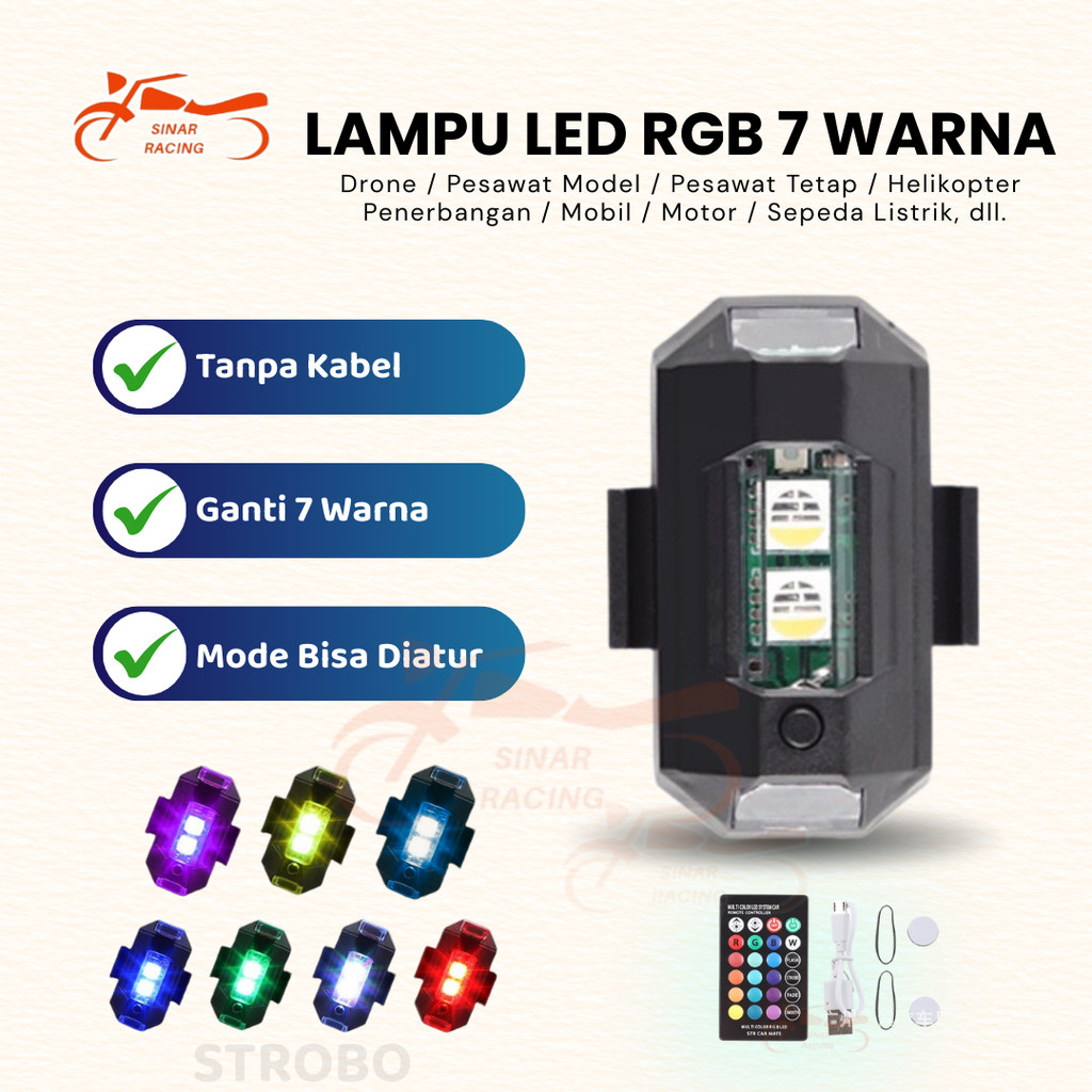 Sinar Rng Paket 2 Lampu + 1 Remote Lampu LED Pesawat Kedip RGB 7 Warna Super Terang USB Motor Mobil IP68