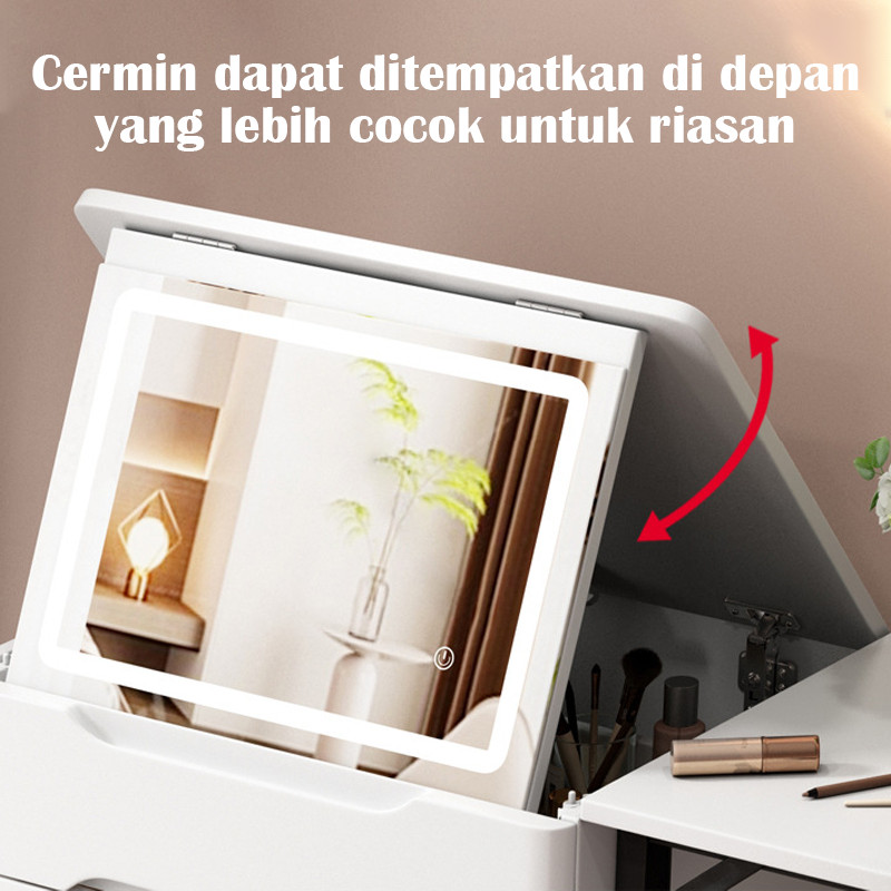 LED Meja Rias 3 Warna Cermin Cahaya Lemari Susun Minimalis Lemari Laci Meja Rias Lipat ly