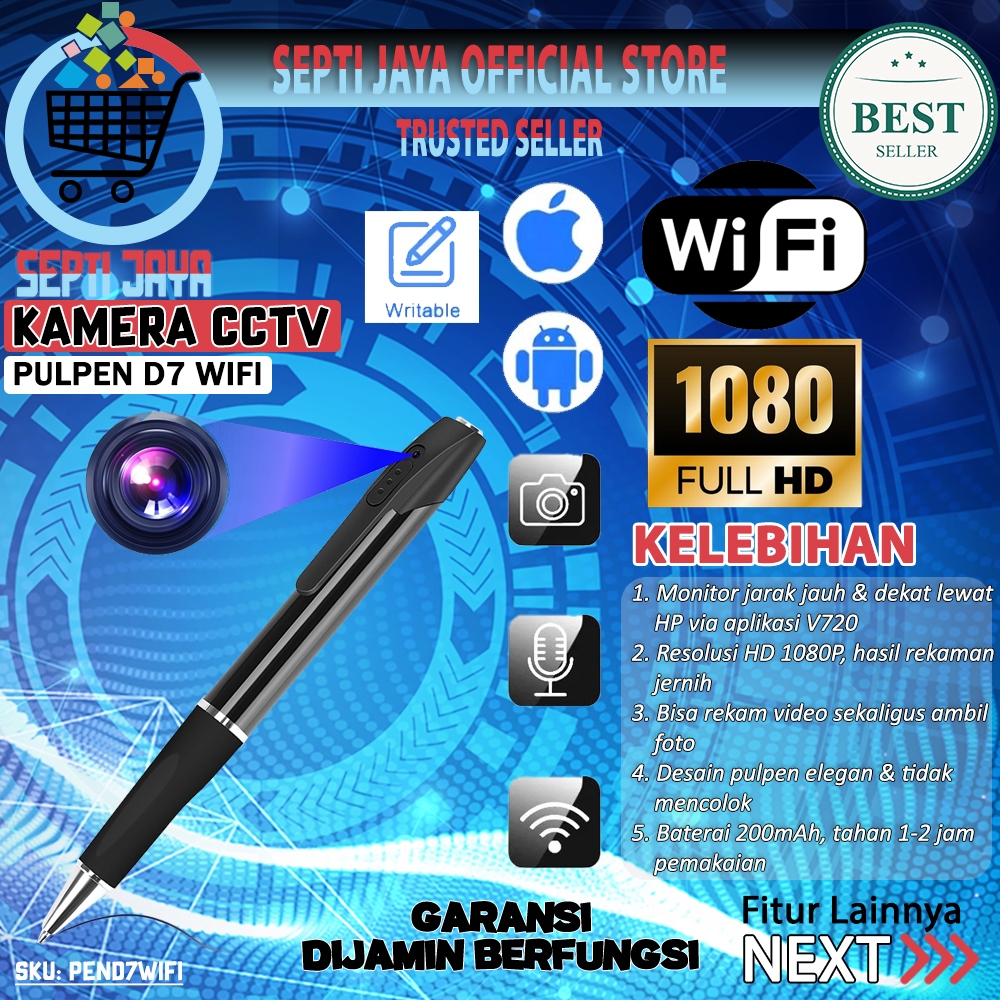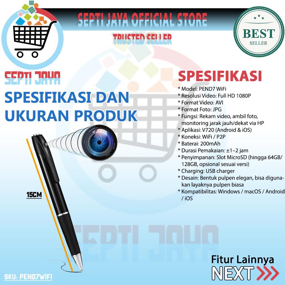 Septijaya PEND7WIFI Kamera Pena 1080P SpyCam Perekam Vidio Voice Recorder D7W Pulpen Camera APP V720