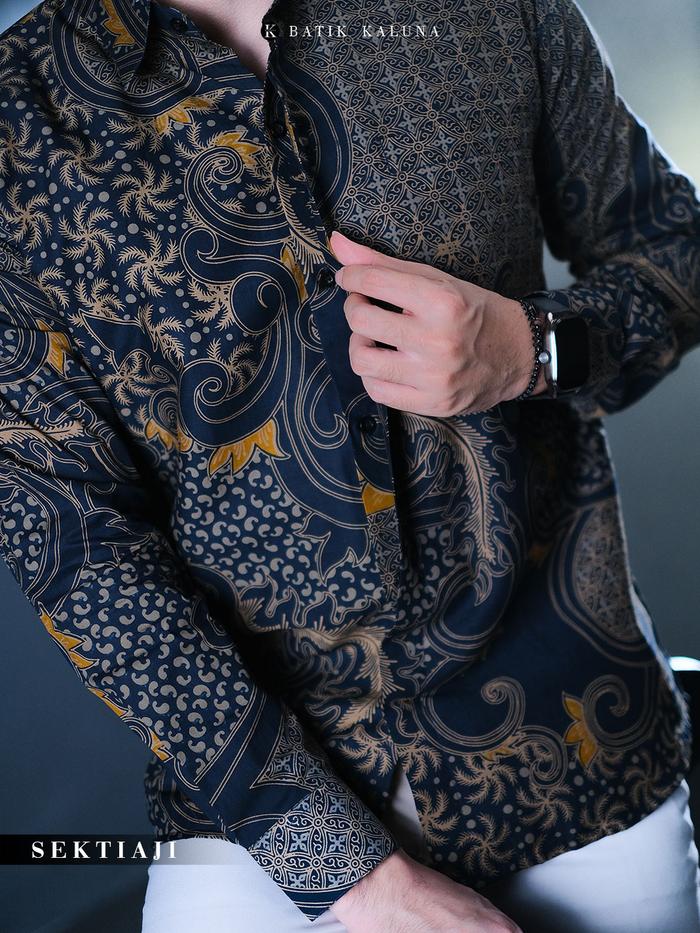 KALUNA BATIK PREMIUM SEKTIAJI KEMEJA BATIK PRIA SLIMFIT LENGAN PANJANG LAPIS FURING SANGGIT - S