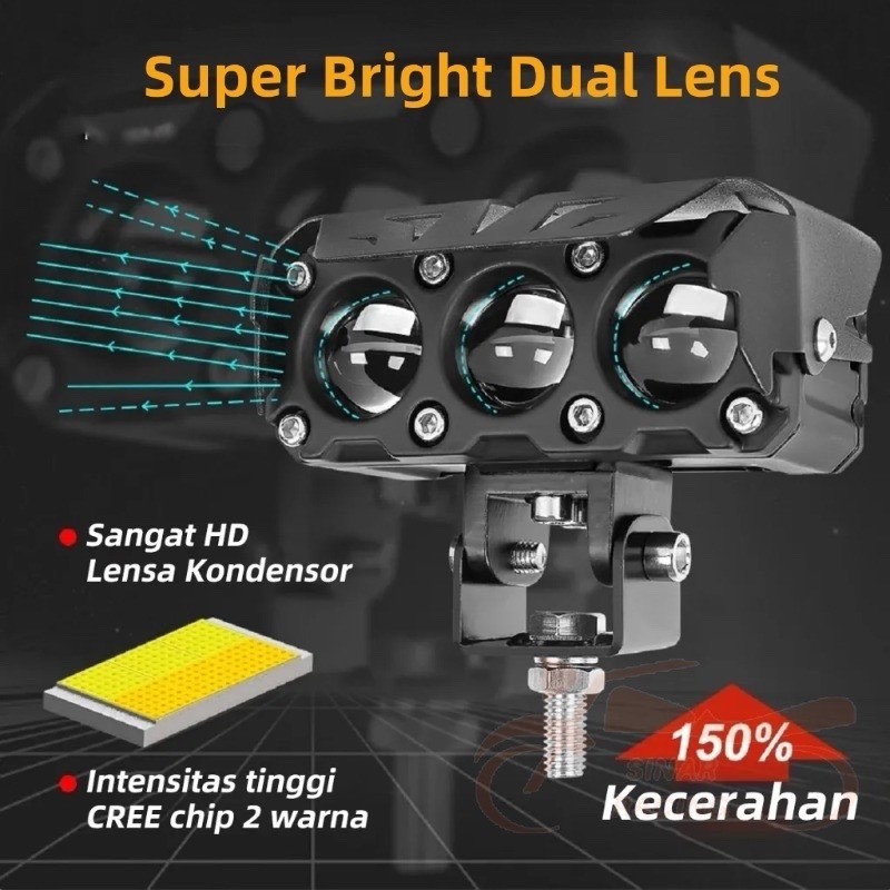 [Best Seller] Lampu LED Tembak 3 Mata Sinar Rng 160W Super Terang IP68 Waterproof Kuning Putih 100000Jam