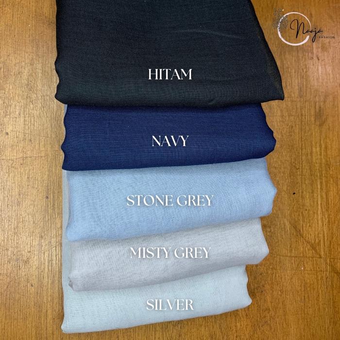 frapuccino, hitam, ivory, latte, misty grey, mocca muda, mocca sedang, mocca tua, navy, peanut, silver, stone grey
