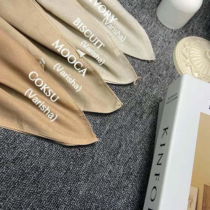 Abu sma(varisha), Army(varisha), Baby blue(varisha), Beige, Benhur, Biskuit(varisha), Black(varisha), Blue denim(varisha), Brown (varisha), Burgundy(Varisha), Bw(varisha), Charcoal, Ciput kaos/Dalaman hijab, Coffee, Coklat pramuka(Varisha), Coksu tua(varisha), Coksu(varisha), Cream(Varisha), Creamy Pink, Dark Maroon, Dark navy(Varisha), Darkchoco mahogany(varisha), Darkgrey(varisha), Dusty pink(varisha), Emeral(varisha), Fushia rose(varisha), Irish, Iron(varisha), Ivory(varisha), Khaki, Latte(varisha), Lavender(varisha), Light grey(varisha), Lilac(varisha), Lime, Maroon(varisha), Matcha(varisha), Mauve (varisha), Merah(varisha), Milo, Mint(varisha), Mocca muda(varisha), Mocca tua(varisha), Mustard, Navy(Varisha), Oat(varisha), Pink lembayung(varisha), Purplegrey(varisha), Rose gold(varisha), Sage green(varisha), Sand(varisha), Sea green(varisha), Taro(varisha), Teracota(varisha), Turkish(varisha), White(varisha), ungu terong, wardah, wineee