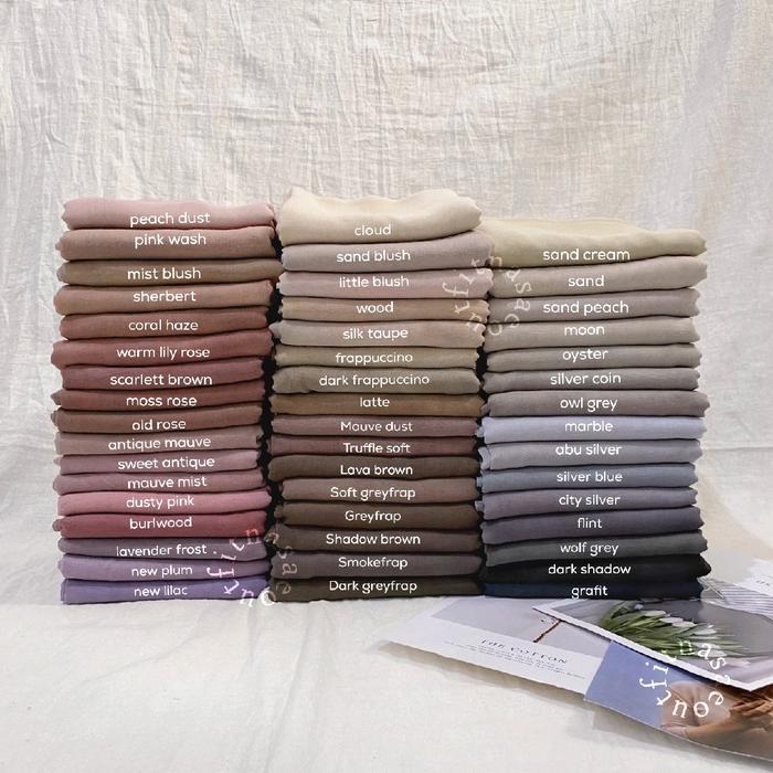 Abu SMA, Amethyst, Ash Rose, BW Off White, Beige, Biscuit, Black Phantom, Blue Jeans, Blush, Blush Latte, Brick, Burgundy, Burgundy Red, ButterMilk, Chamomile Brown, Chesnut, City Silver, Coral Haze, Creamer, Dark Chocolate, Dark Frappucino, Dark Greyfrap, Dark Navy, Dark Olive, Dark Wineee, Deep Teal, Double Latte, Eiffel Blush, Flint, Frappuccino, French Grey, Heavenly Pink, Hint Grey, Hitam, Ion Blue, Ivory Cream, Ivory/Gading, Jasmine Grey, Latte, Lava Brown, Little Blush, Matcha, Mauvelous, Mint, Mosquito Brown, Mustard, New Arrival, New Colour, Nude, Olive, Opsi 18, Opsi 3, Opsi 6, Opsi 7, Opsi 8, Opsi 9, Owl Grey, Oyster (Light), Papper Bag, Peapod, Pewterrr, Pink Blush, Pinkwash, Powdery Nude, Putih, Raspberry Glace, Rich Gold, Sage, Sage Grey, Salt Egg Sage, Sand (Cream), Sand II, Shadow Brown, Silk Taupe, Silver Bright, Silver Coin, Soft Dusty, Soft Pink, Teaberry, Thai Tea, Thistle, Wheat, Winters Blue, Wolf Grey, Wood Mauve