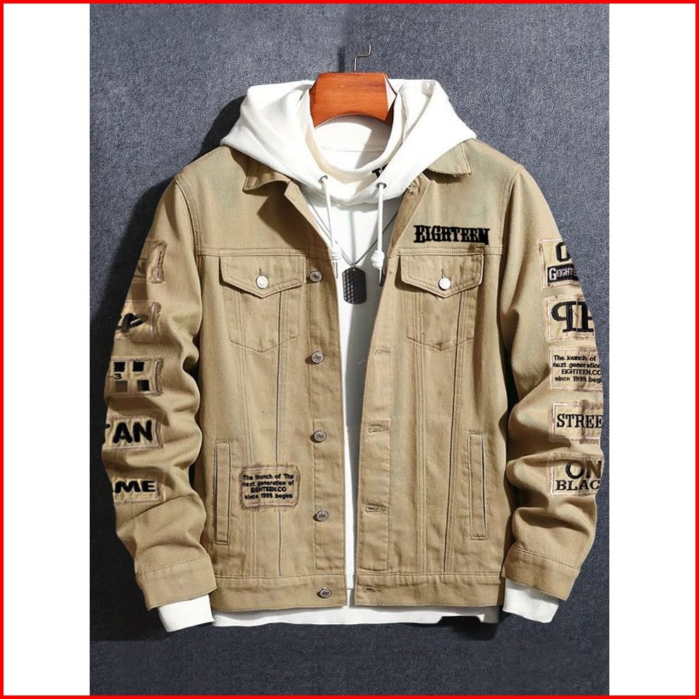Jacket Jeans Casual Pria Model Baru Swag Hitam Pekat Sobek Kekinian Eblem Bordiran Printing
