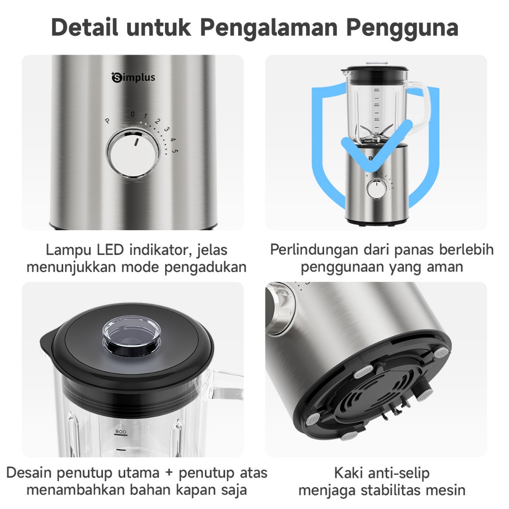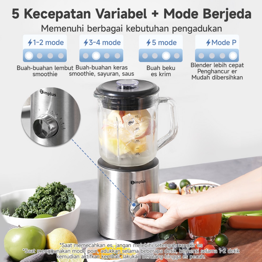 Simplus Blender 400W Makanan 5 mode pengaturan multifungsi, 6 bilah pisau stainless steel 304