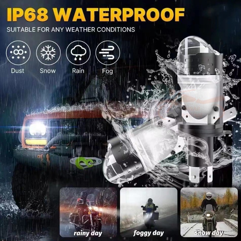 Sinar Rng LED H4 120W Projector Blue Lens Dengan Devil Eye & Kipas Pendingin Untuk Motor/Mobil