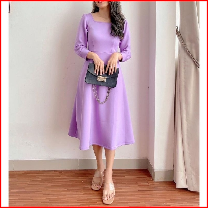 Dara Dress Midi Scuba Stretch Flare Koreanstyle