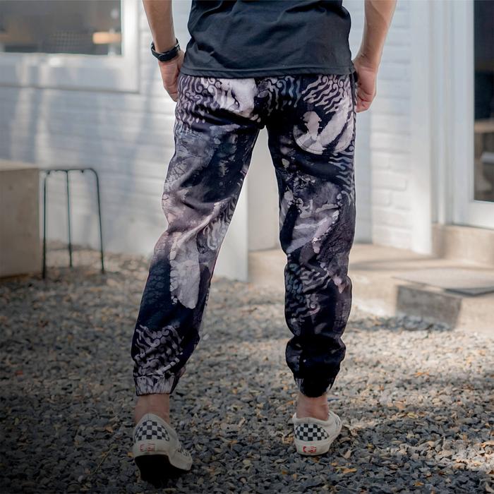 CELANA BATIK JOGGER PREMIUM MOTIF ETNIK PARANG ABU BAHAN NYAMAN COCOK UNTUK AKTIVITAS SEHARI-HARI - S