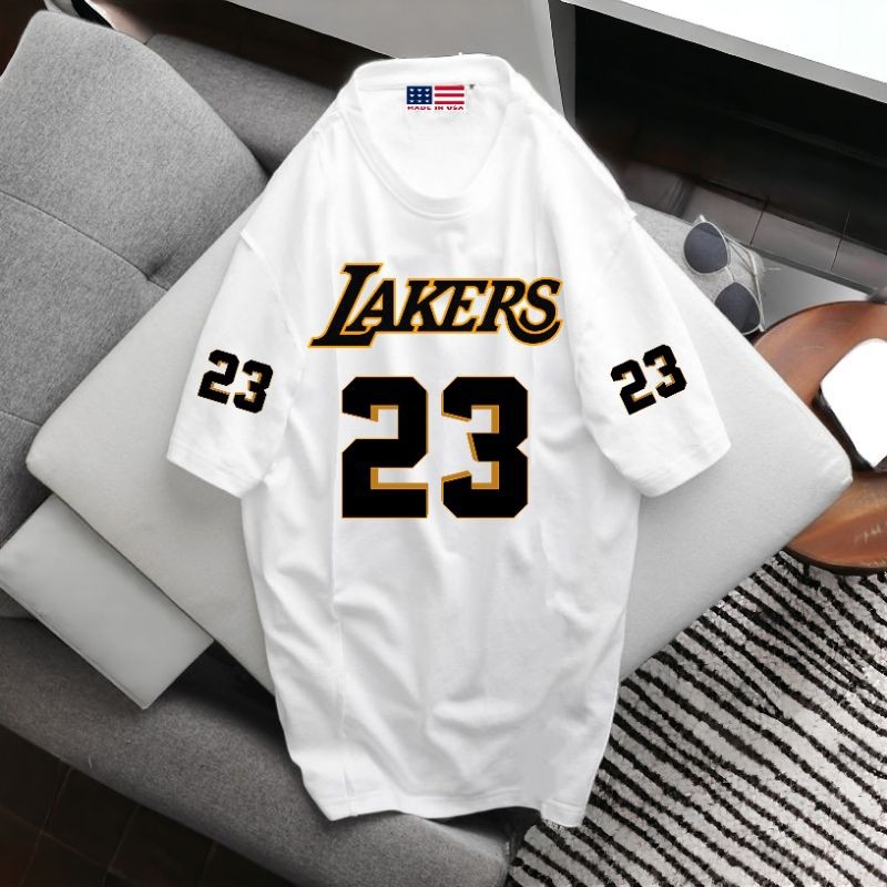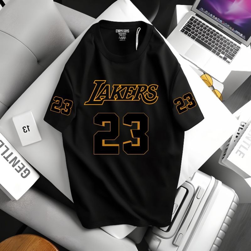 Kaos Distro lakers 23 Lengan Pendek Style Santai Sporty Bahan Cotton 24s, adem & nyerap keringat,,,,