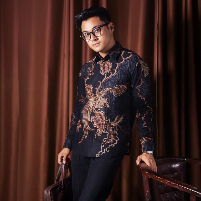 ENZY BATIK KEMEJA BATIK PRIA SLIMFIT HANYOKROKUSUMO - BLACK - S