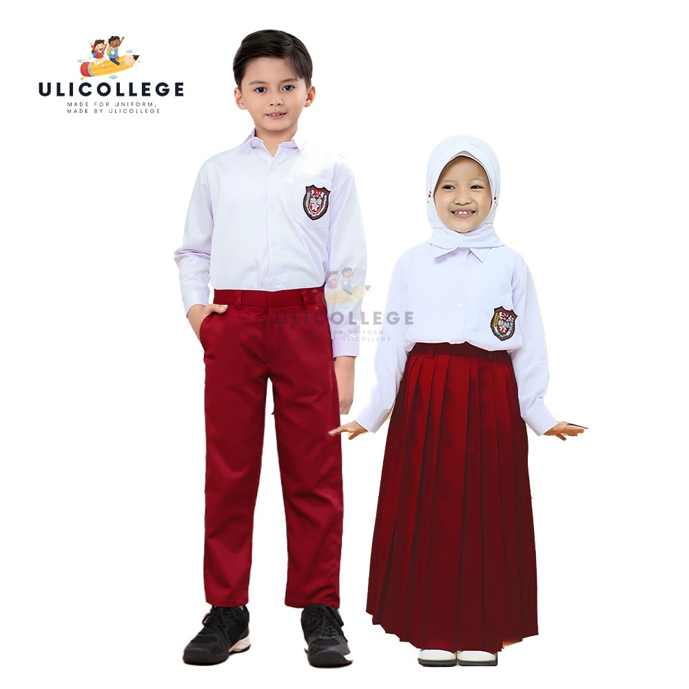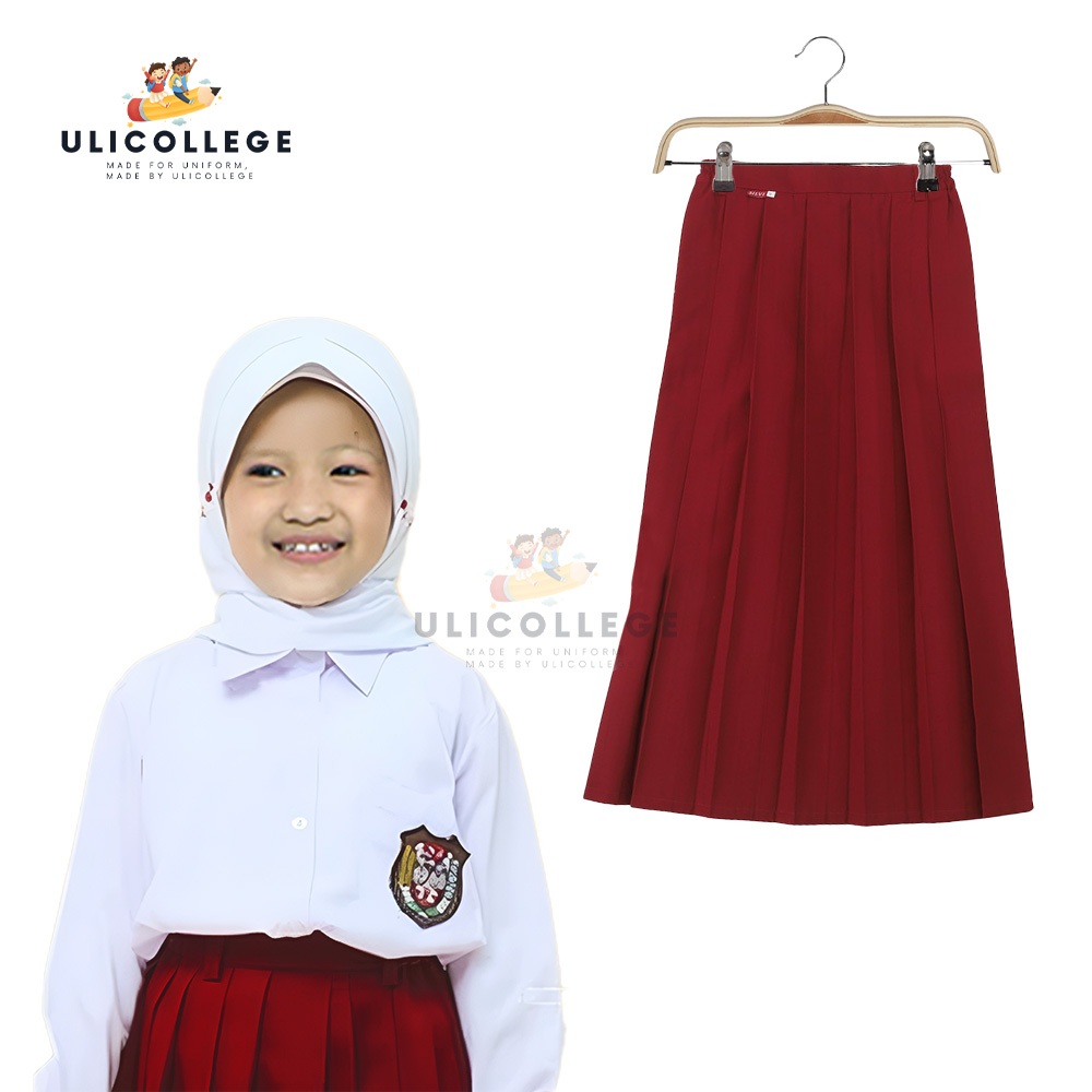 Seragam SD Rok Panjang Rempel Merah Seragam Sekolah Rok Rempel