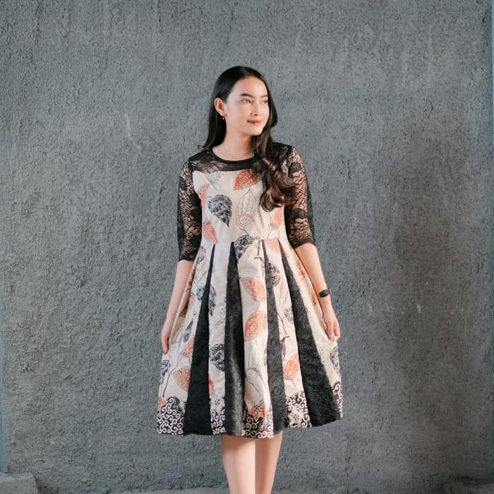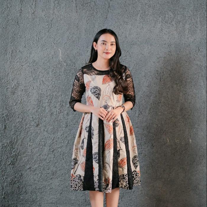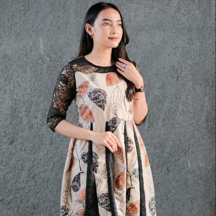 MOTIF TALITA | BATIK MAHADEWI | DRESS BATIK WANITA LENGAN PENDEK PREMIUM TER BARU | BAJU WANITA KERJA SANTAI CANTIK KAIN - TALITA, S