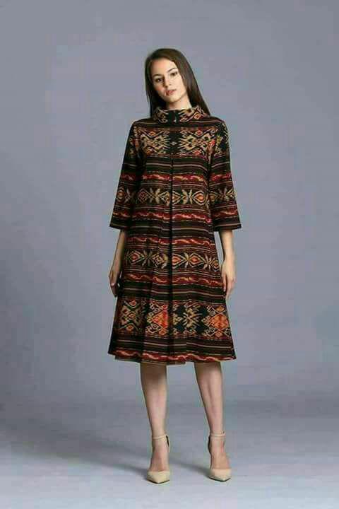 LONG DRESS MIDI CASSUAL ETHNIC BATIK GRINGSING MODERN TENUN JEPARA - S