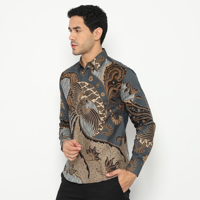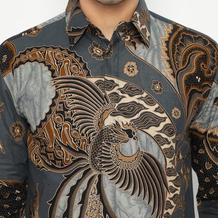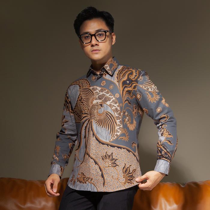 ENZY BATIK KEMEJA BATIK PRIA RANAWIJAYA - GREY - S, TANPA TRICOT