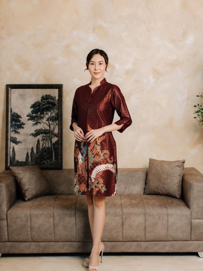 ADYATMA ADHIWANGSA MAROON DRESS BATIK WANITA KATUN FOIL - S