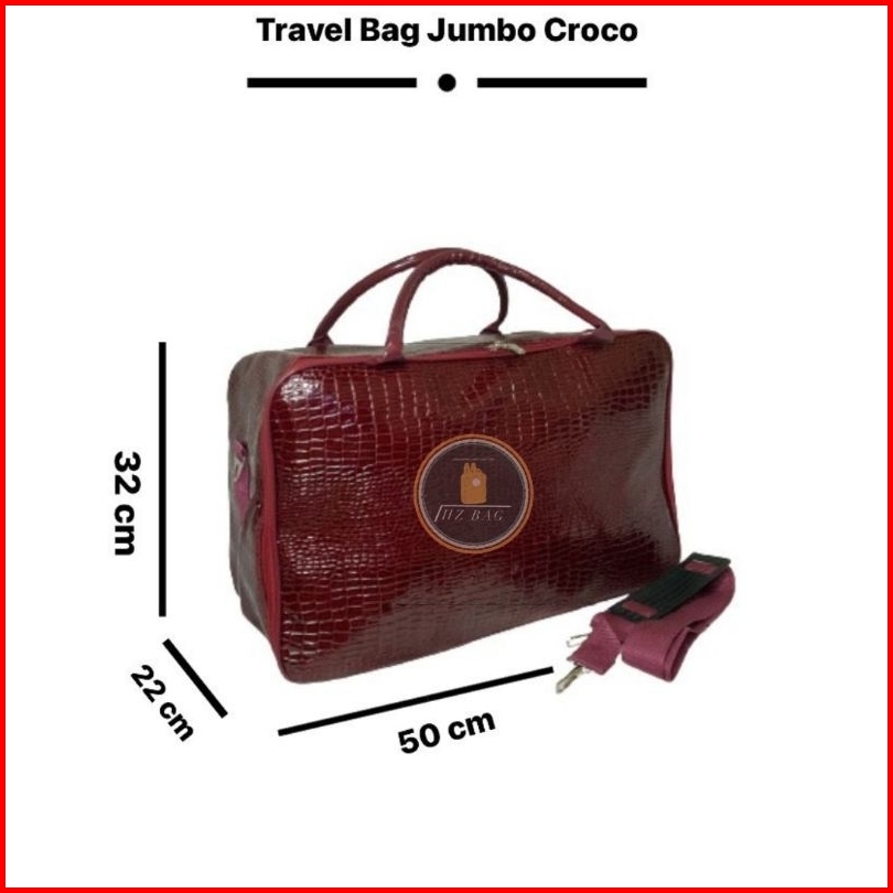 Travel Bag Jumbo Kulit Premium Motif Croco Tas Koper Kulit Waterproof Sintesis Tas Traveling Tas Pakaian Pakai Kantong D
