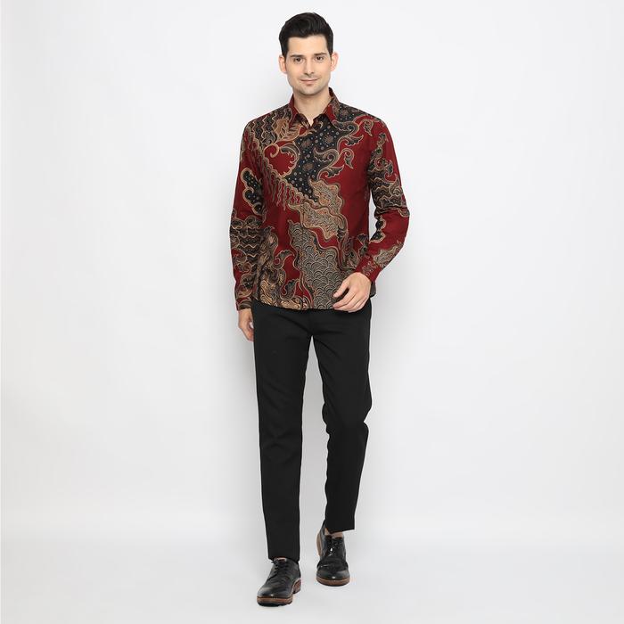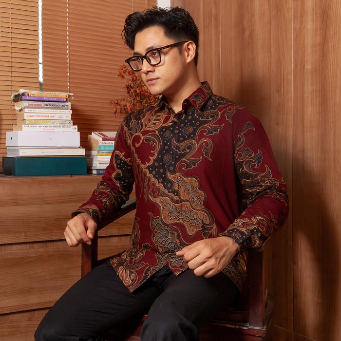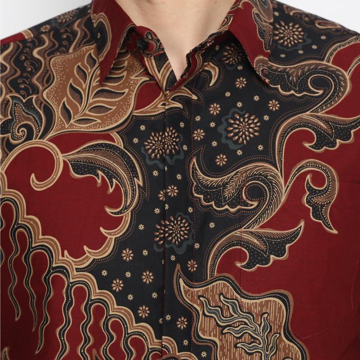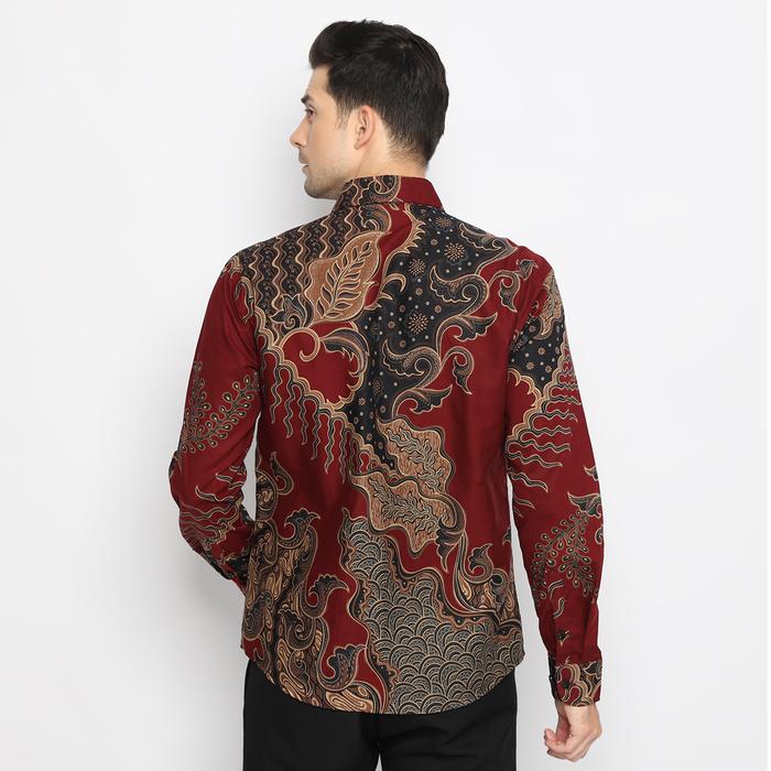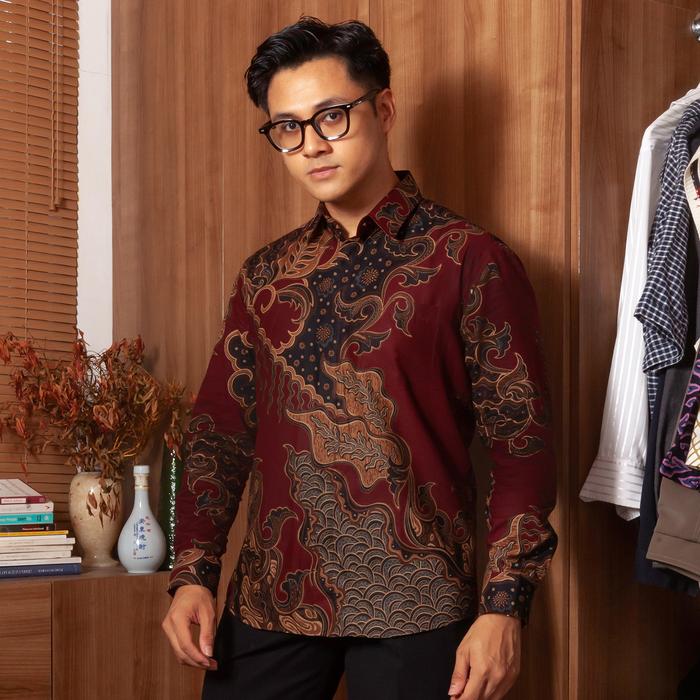 ENZY BATIK KEMEJA BATIK PRIA GANESHA - MAROON - S, TANPA TRICOT