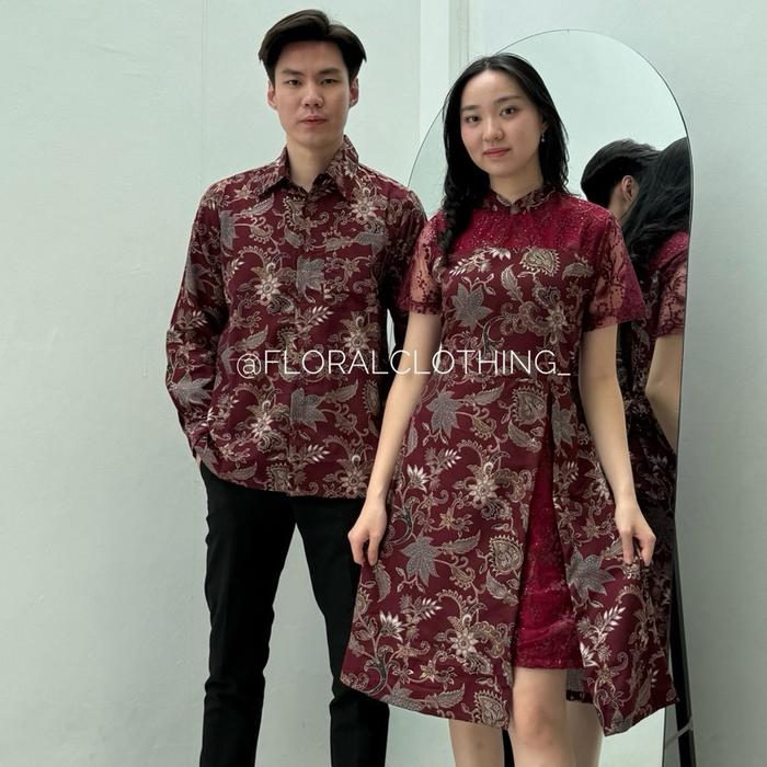 DRESS WANITA BATIK COUPLE KEMEJA BATIK BAHAN PREMIUM F36 - COUPLE MAROON